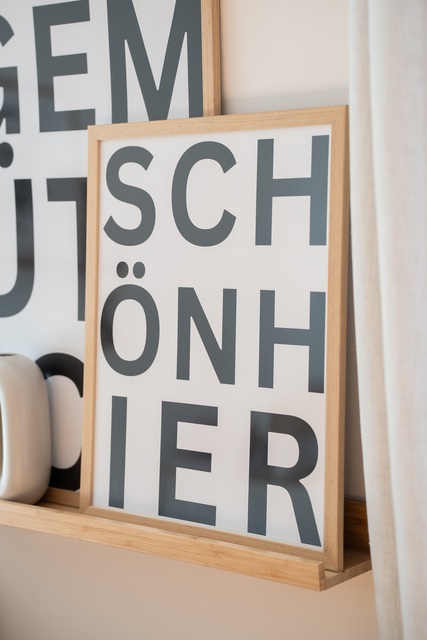 Ihr sucht nach einer schicken und stilvollen Möglichkeit, Eure Liebe zu Eurem Zuhause auszudrücken? Dann ist "SchönHier" genau das Richtige für Euch! Dieses wunderschöne Wortkunstwerk fängt perfekt das Gefühl ein, zu Hause zu sein, wo alles stimmt. Egal, ob Ihr Euer Wohnzimmer, Schlafzimmer oder einen anderen Raum in Eurem Zuhause verschönern möchtet. Warum also warten? Bestellt ihn noch heute und feiert die Schönheit Eure Zuhauses.